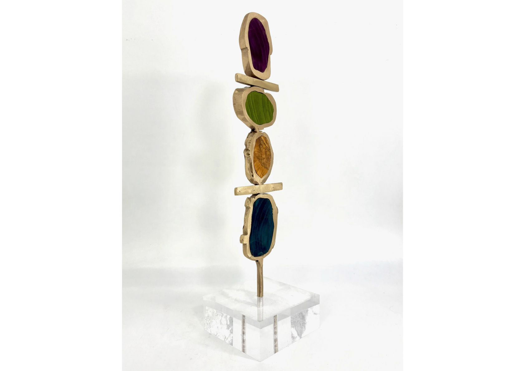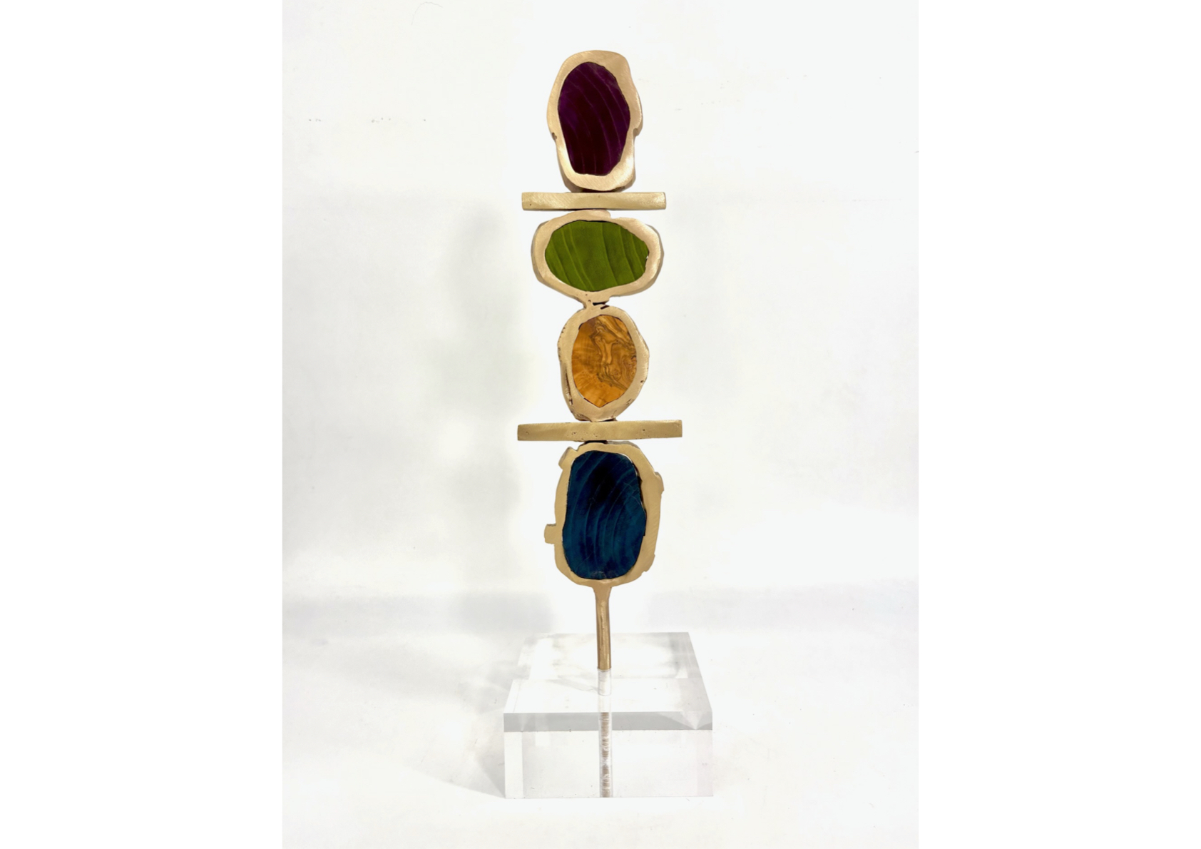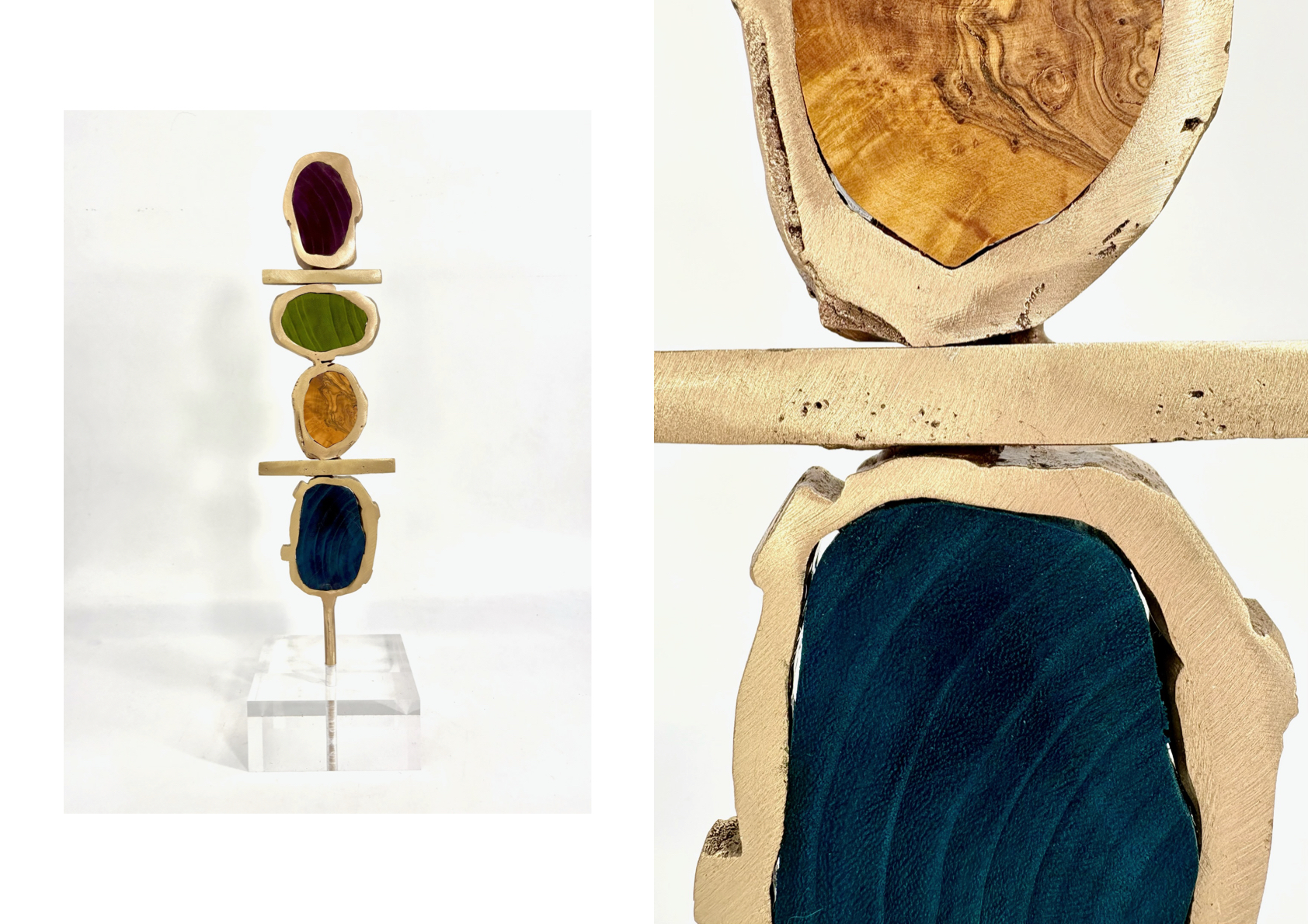 BRONZE, Olive wood, PAULOWNIA WOOD, Watercolor ink, SOCLE a PLEXIELY.
