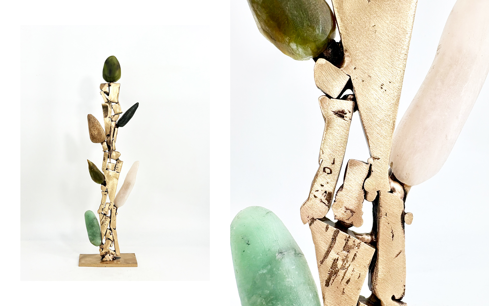 Bronze, stéatite, rose, verte, beige et noire.