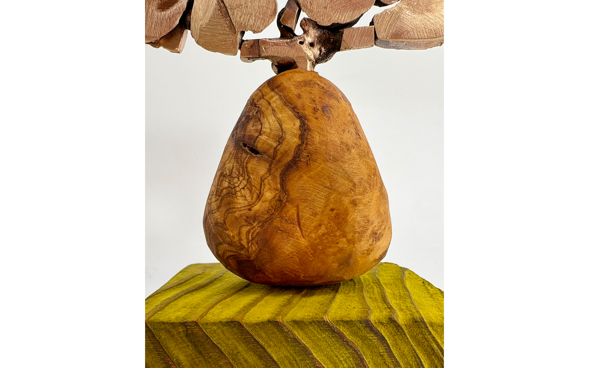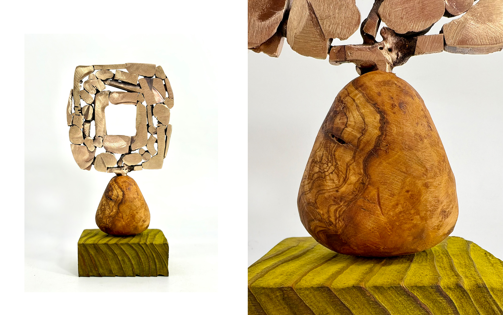 Bronze, bois d’olivier, bois de séquoia érodé.