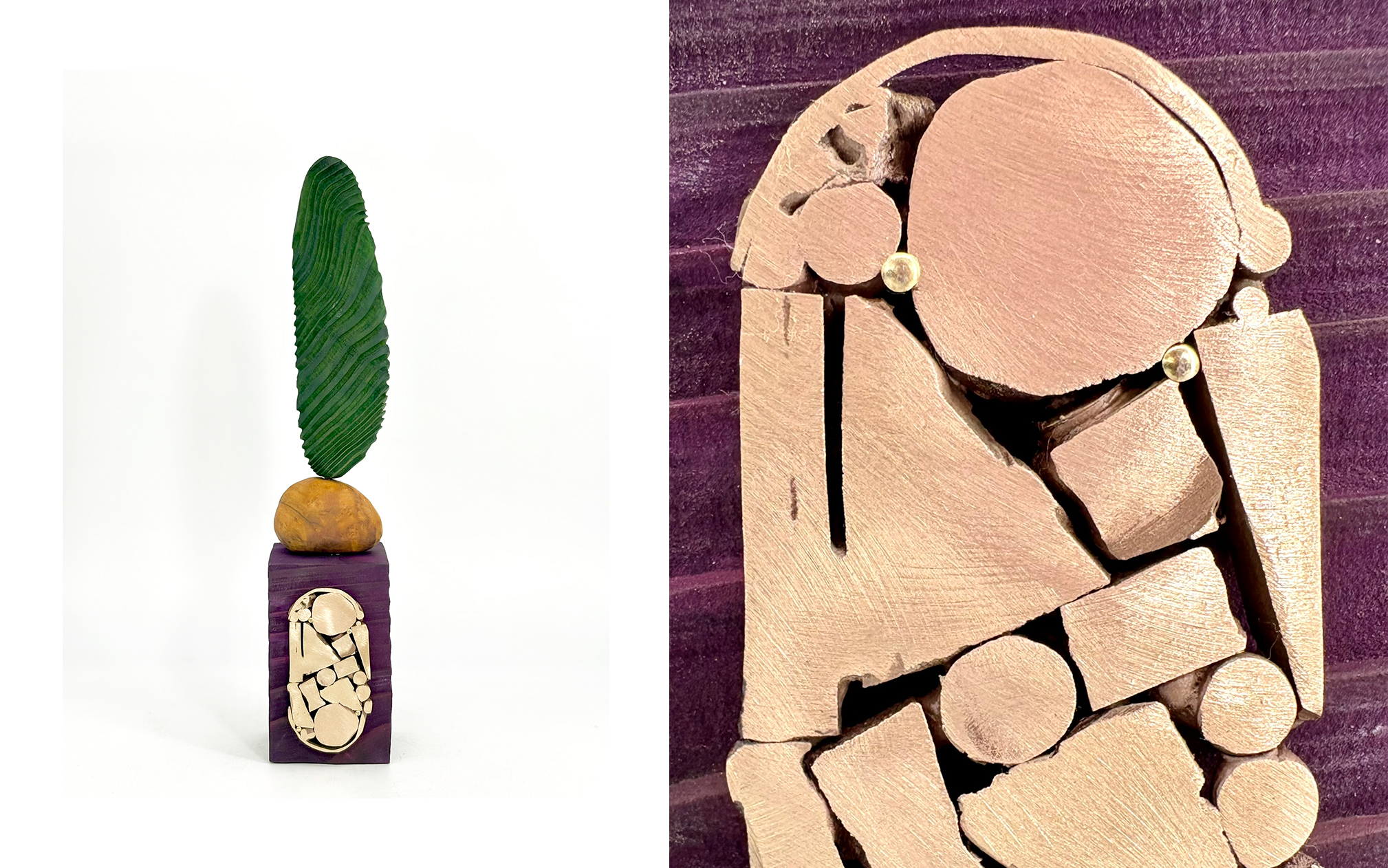 Bronze, bois de séquoia érodé, bois d’olivier.
